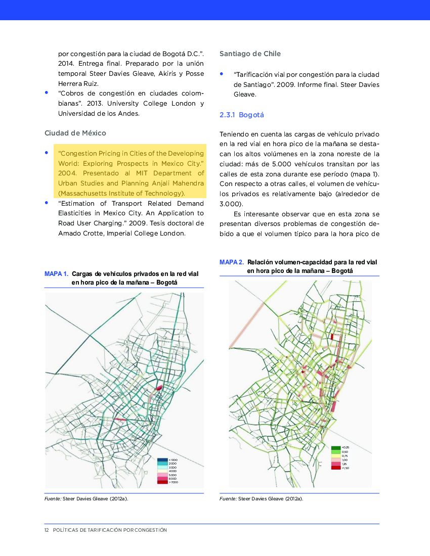 Políticas de tarificación por congestión: Efectos potenciales y consideraciones para su implementación en Bogotá, Ciudad de México y Santiago