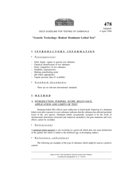 Test No. 478: Genetic Toxicology: Rodent Dominant Lethal Test