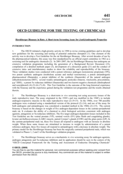The Hershberger Bioassay is an in vivo short–term screening test. It evaluates the ability of a chemical to elicit biological activities consistent with androgen agonists, antagonists or 5 á-reductase inhibitors. The current bioassay is based on the changes in weight of five androgen-dependent tissues in the castrate-peripubertal male rat: the ventral prostate, seminal vesicle (plus fluids and coagulating glands), levator ani-bulbocavernosus muscle, paired Cowper’s glands and the glans penis. In order to establish whether a test substance can have androgenic or antiandrogenic action, two – respectively three - dose groups of the test substance, plus positive and vehicle (negative) controls are normally sufficient. The test substance is administered by gavage or subcutaneous injection daily for 10 consecutive days. To test for antiandrogens, the test substance is administered together with a reference androgen agonist. Each treated and control group should include a minimum of 6 animals. The animals ...