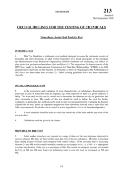 Test No. 213: Honeybees, Acute Oral Toxicity Test
