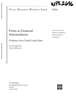 The authors argue that non-financial firms act as intermediaries, by channeling short-term funds from the financial institutions in an economy, to their best use. Non-financial firms act in this way because they may have a comparative advantage in exploiting informal means of ensuring that borrowers repay. These considerations suggest that to optimally exploit their advantage in providing trade credit to some classes of borrowers, firms should obtain external financing from financial intermediaries, and markets, when this is efficient. Thus the existence of a large banking system is consistent with these considerations. Using firm-level data for thirty nine countries, the authors compute turnovers in payables, and receivables, and examine how they differ across financial systems. They find that the development level of a country's legal infrastructure, and banking system predicts the use of trade credit. Firms' use of bank debt is higher relative to their use of trade credit in countries with efficient leg...