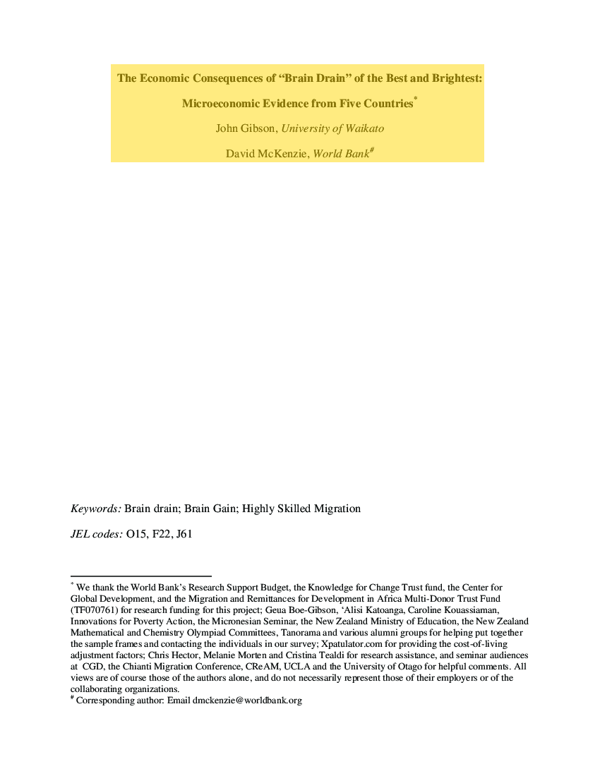 The Economic Consequences of Brain Drain of the Best and Brightest : Microeconomic Evidence from Five Countries