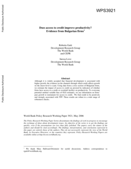 Although it is widely accepted that financial development is associated with higher growth, the evidence on the channels through which credit affects growth on the micro-level is scant. Using data from a cross section of Bulgarian firms, the authors estimate the impact of access to credit (as proxied by indicators of whether firms have access to a credit or overdraft facility) on productivity. To overcome potential omitted variable bias of OLS estimates, they use information on firms' past growth to instrument for access to credit. The authors find credit to be positively and strongly associated with total factor productivity. These results are robust to a wide range of robustness checks.