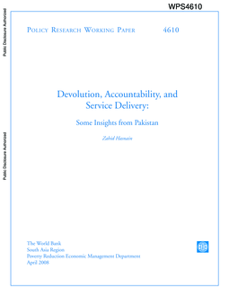 Devolution, Accountability, and Service Delivery : Some Insights from Pakistan